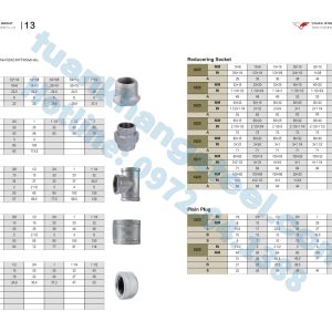 6. Bảng thông số kỹ thuật tham khảo (Côn ren mạ kẽm)
